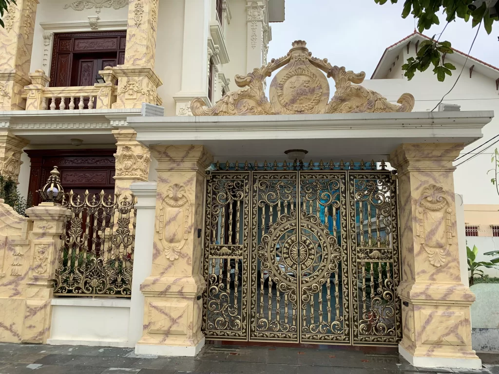 • Đặc biệt, với những loại cổng có thiết kế hoa văn cầu kỳ, họa tiết phức tạp, đòi hỏi thi công tỉ mỉ, giá thành sẽ cao hơn do quá trình sản xuất mất nhiều thời gian hơn, cần sử dụng thiết bị hiện đại và yêu cầu về tay nghề của thợ cũng cao hơn so với những loại cổng có thiết kế phổ thông.