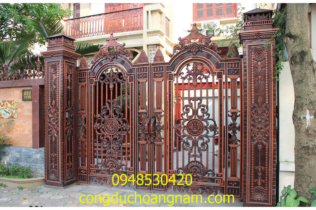 Cổng nhôm đúc 2 cánh là loại cổng được sử dụng phổ biến và được ưa chuộng hiện nay. Loại cổng này phù hợp với mọi thiết kế nhà, từ kiểu nhà biệt thự với diện tích xây dựng lớn đến những ngôi nhà biệt thự dạng liền kề với mặt tiền nhỏ. Thiết kế cổng nhôm đúc 2 cánh nhỏ gọn nhưng vẫn mang đến sự sang trọng, hiện đại cho ngôi nhà của bạn.